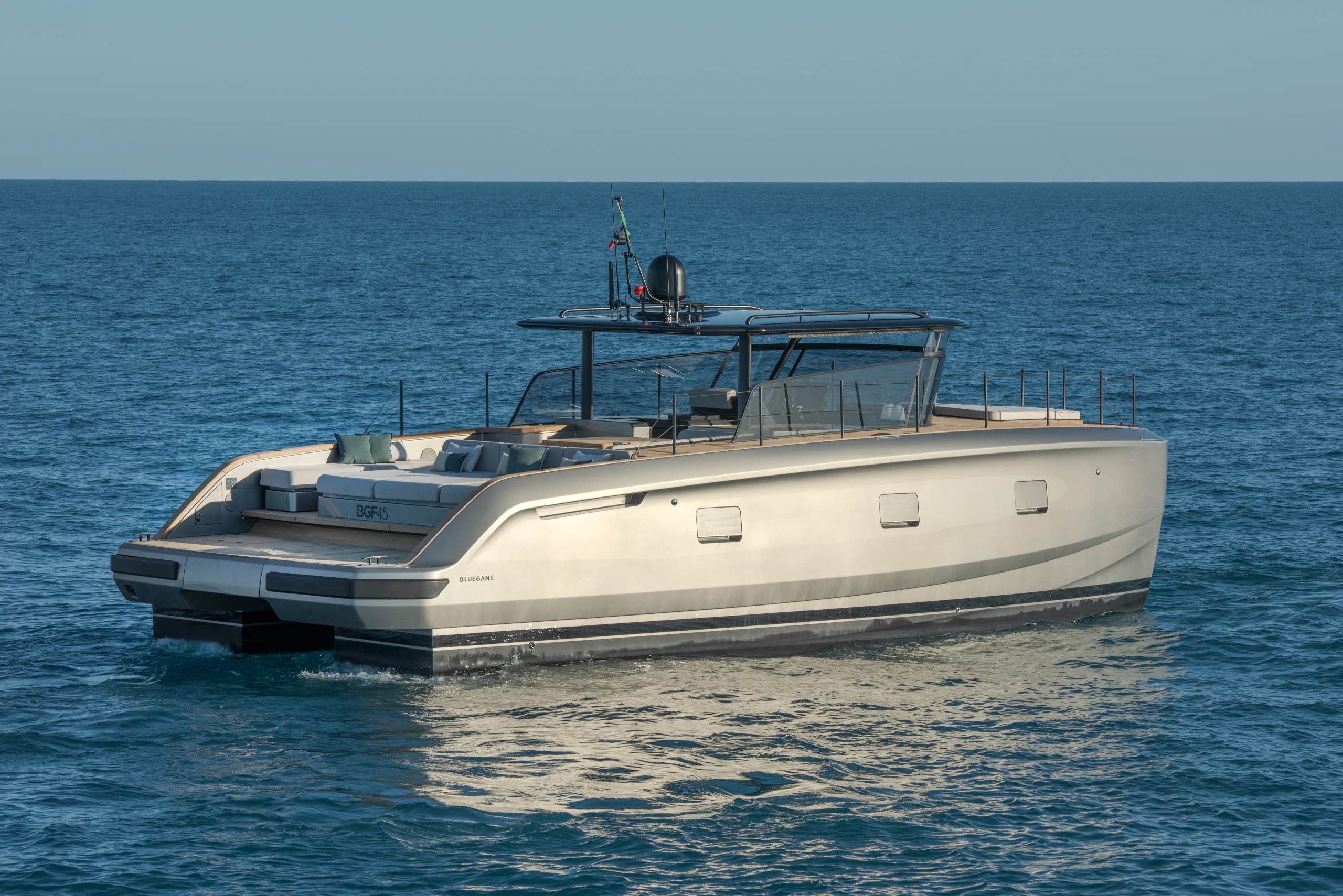 El BGF45 reduce el consumo (hasta un 30 %), ofrece una comodidad de crucero inigualable incluso a altas velocidades (30-35 nudos) y ofrece un espacio a bordo excepcional para un yate de este tamaño: dos camarotes, uno interior versátil, una espaciosa terraza y una elegante zona de estar en la playa para disfrutar al aire libre. Bluegame lanza al mercado un yate que combina rendimiento y sostenibilidad a un nivel sin precedentes. Con su tecnología innovadora y su diseño espacioso, la BGF45 establece un nuevo estándar en la industria.